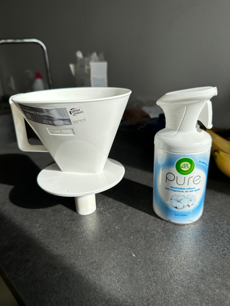 Up 85 steps and I swear it’s 92 degrees or I should say 33 celsius in the flat. We open every window and pray for a breeze. We simply get hotter and I’ve decided the flat has an odd smell. Light more candles. Another trip to market for air fresher and Kenny has designs on drip filter coffee set up. Victory and more stair master sweating is his reward.