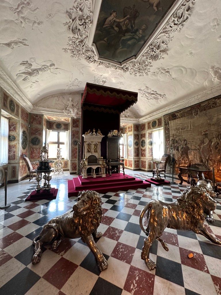 Rosenborg Castle was build in the 1600s as a pleasure palace of King Christian V and his following heirs. Wow. The Castle is packed with art and all things that glitter. Truly my favorite part is all the naked women. Why? They are full bodied women floating above. Rubenesque. (Peter Paul Rubens was heavily influenced by the art and depiction of the female form in the Castle.) These are real women, not some ‘ozempic’ dream. These floating women enjoyed life – food, drink, sex & motherhood. Ideals to celebrate in my book.