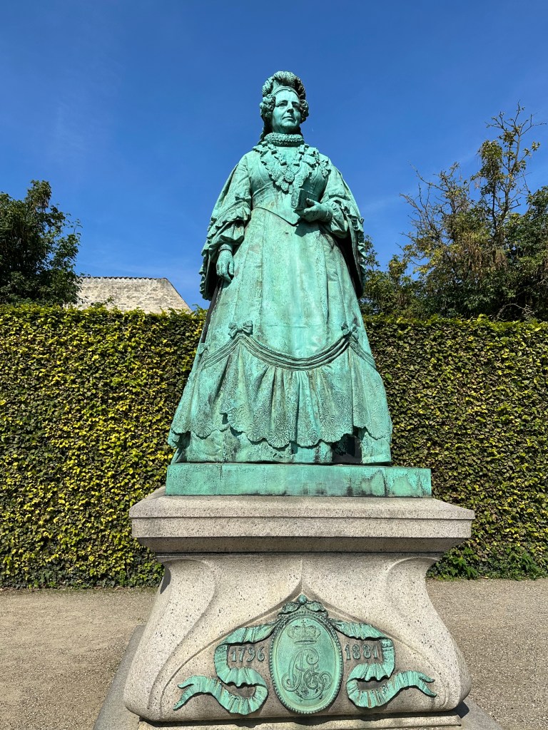 We wandered back into the sunshine and the King’s Garden with Queen Caroline holding court among the roses. Her austere pose demanded respect and no funny business. I didn’t imagine her enjoying the pleasure palace ever. I think she liked the garden better with her book.