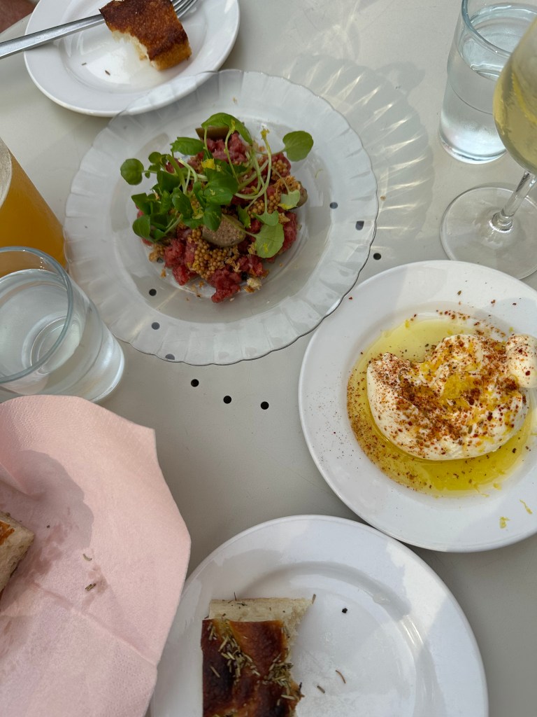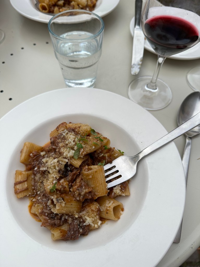 After a good rest and ice cream, we took another viggo to the apartment to change and hit the streets again for supper. Kenny had found another ‘cool kid’ area about 10 mins walk away. We were looking for a new restaurant. We landed at Bar Pasta, sitting outside with the young families. We ordered the ‘price fix’ menu…steak tartar, antipasto, burrata cheese, soft focaccia bread, pasta with cream, lemon & pistachios, pasta with beef & pork ragu, some light ice creamish thing and booze to spar. Wine and homemade limoncello.