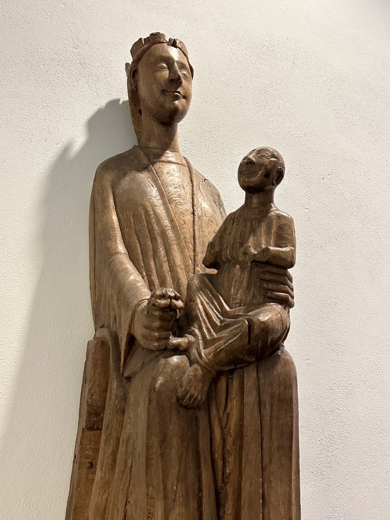 The Middle Ages exhibits follow the timeline of the Old Gods replaced by Christianity. The art is carved and precious for it’s storytelling. As reading and writing was not common to the average person, the art spread the message of Jesus and Mary. Mary is not minor player in the telling, she is central to the message of faith and womanhood.