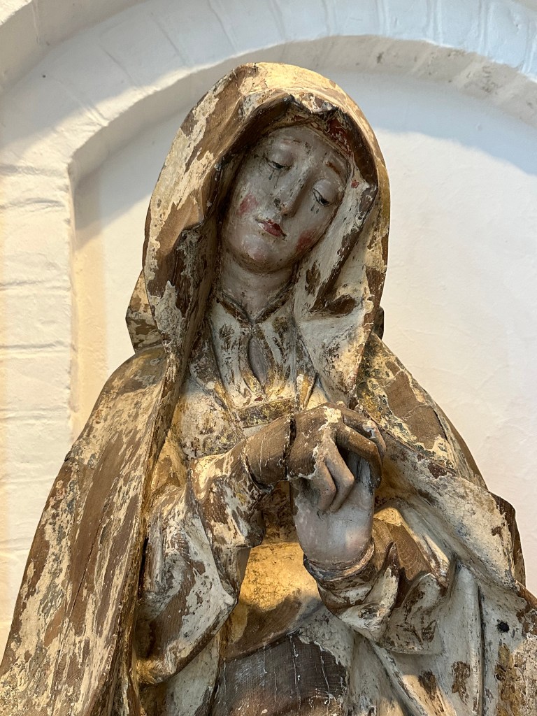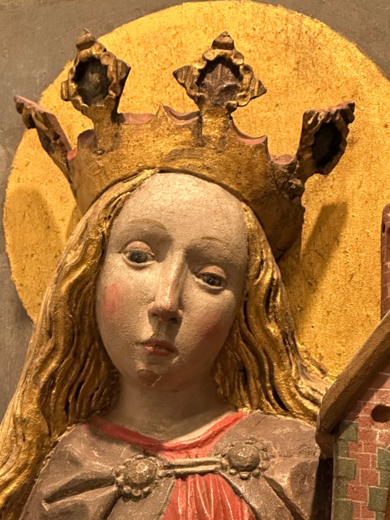 I was surprised by the number of female figures celebrated in the Middle Age Christian art as I am more familiar with the male influence and exclusivity. It seems reflective of the Viking culture that revered men and women as having different but equal value in community.