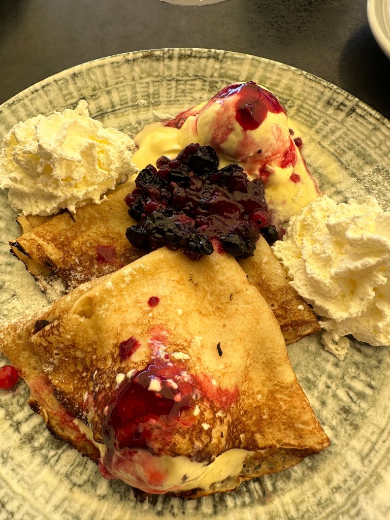 There are only a few restaurants and most of them pizzerias. DELICIOUS. There is only one spot open for breakfast in September, but there is plenty of seating. The day tourists and locals both enjoy an espresso or cappuccino to start the day. I recommend the crepes with warm jam and ice cream. Yes, I said ice cream for breakfast! Yum!