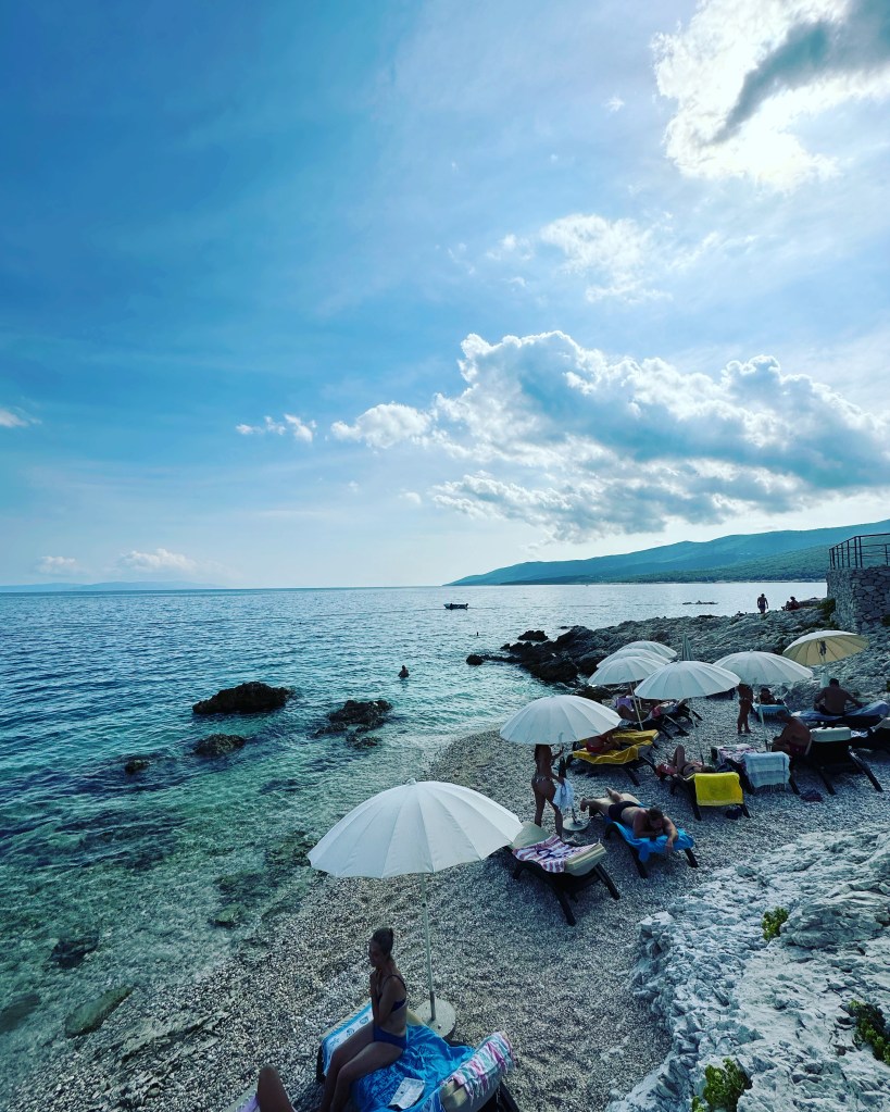 The Adriatic Sea is gorgeous. The water is clean and sparkling. The beaches are rocky, not sandy. One must wear water shoes to play in the sea. We have a car thus we’ve been able to travel to other Croatian ports and Venice.