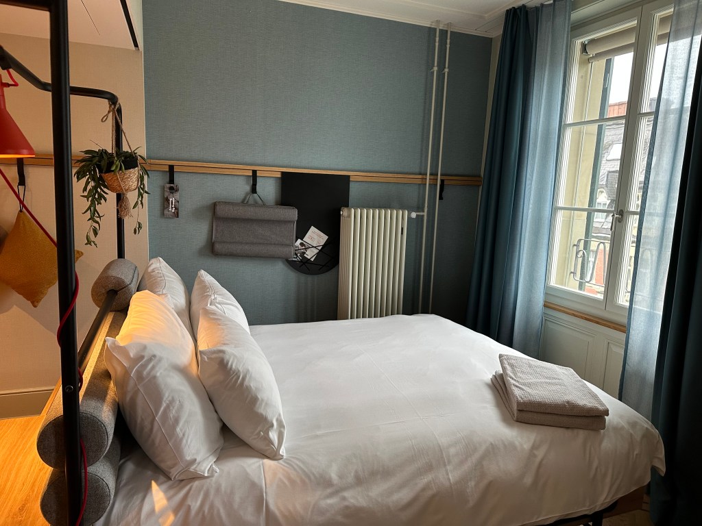 Eternal question – why does Europe have something against sheets? Bedding here consists of a flat or fitted sheet on the bed and a duvet. No top sheet. We haven’t seen a top sheet since we left the USA in August. The pillows are very hit or miss too. (Tip – Very much a hit at last hotel Stay KooooK Bern City.) We miss, miss good pillows.